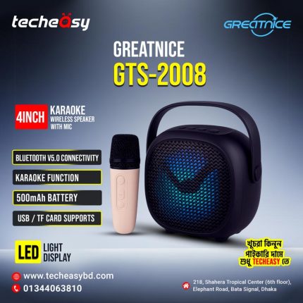 GREATNICE GTS-2008 Bluetooth, USB, TF Card & FM Radio Supported 4″ Karaoke Wireless Speaker With Mic