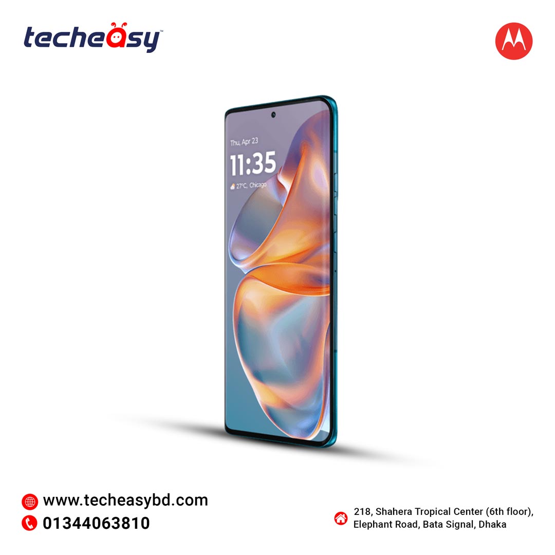 Experience faster performance while having fashionable design features from Motorola Edge 0 Pro 5G. Comes with a large 6.7-inch P-OLED display, boasting HDR10+ for vivid visuals at 446 ppi. Safeguard your vision with SGS Low Blue Light certification. Embrace the sun with peak brightness up to 2000 nits. Snapdragon 7 Gen 3 chipset gives you up to 2.63 processing for smoother functioning while Adreno GPU graphics ensure better gaming while playing games like PUBG Mobile or Mobile Legends. Experience quicker multitasking with 12 GB LPDDR4X RAM and up to 512 GB UFS 2.2 storage. Capture lifelike moments with a versatile camera setup. Immerse in audio bliss with Dolby Atmos-tuned dual stereo speakers. Stay ahead with Wi-Fi 6E for lightning-fast connectivity. Power through the day with a 4500 mAh battery, turbocharged with 125W TurboPower Charging. All packed in a lightweight 186 grams to ensure a handy experience.
